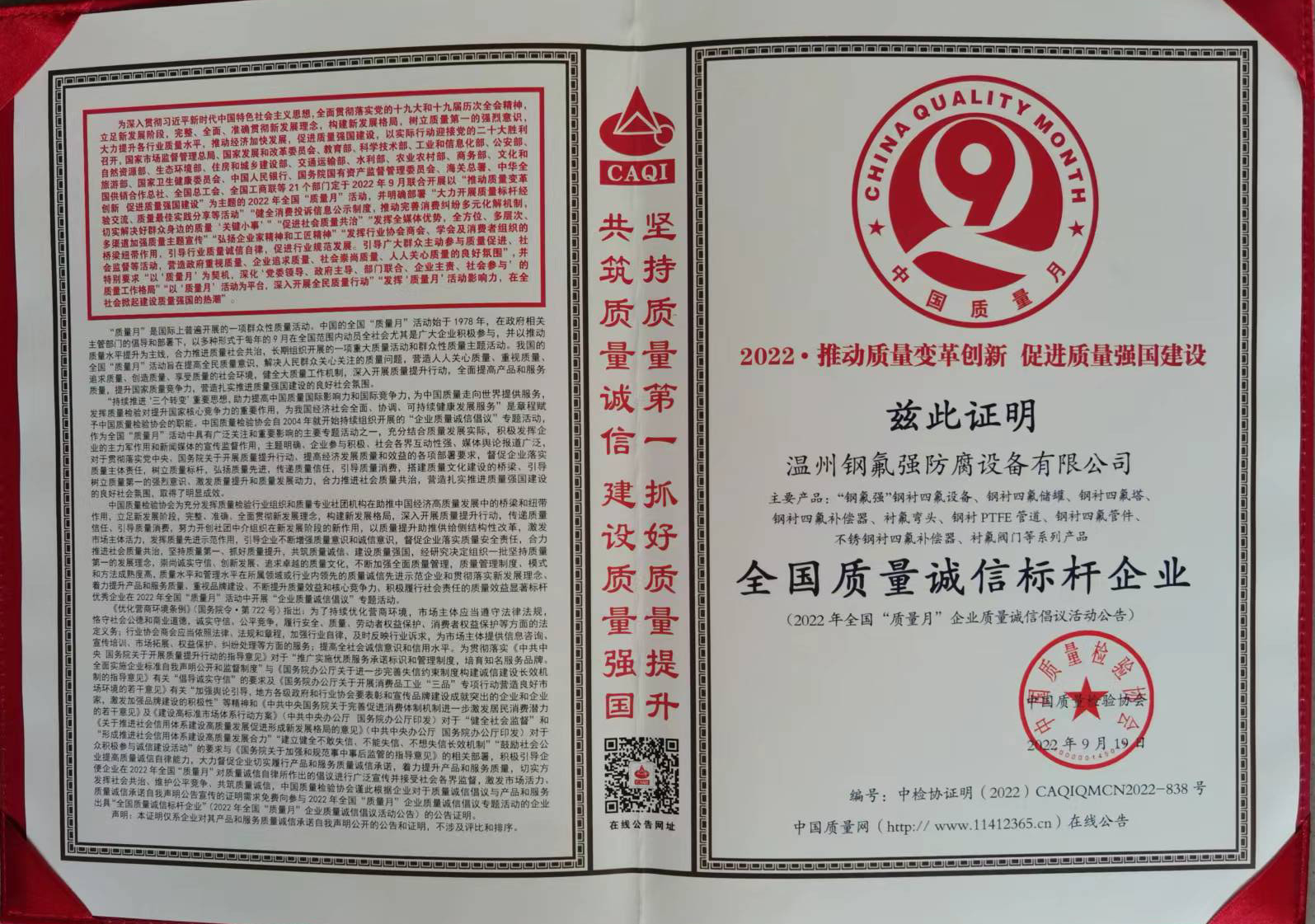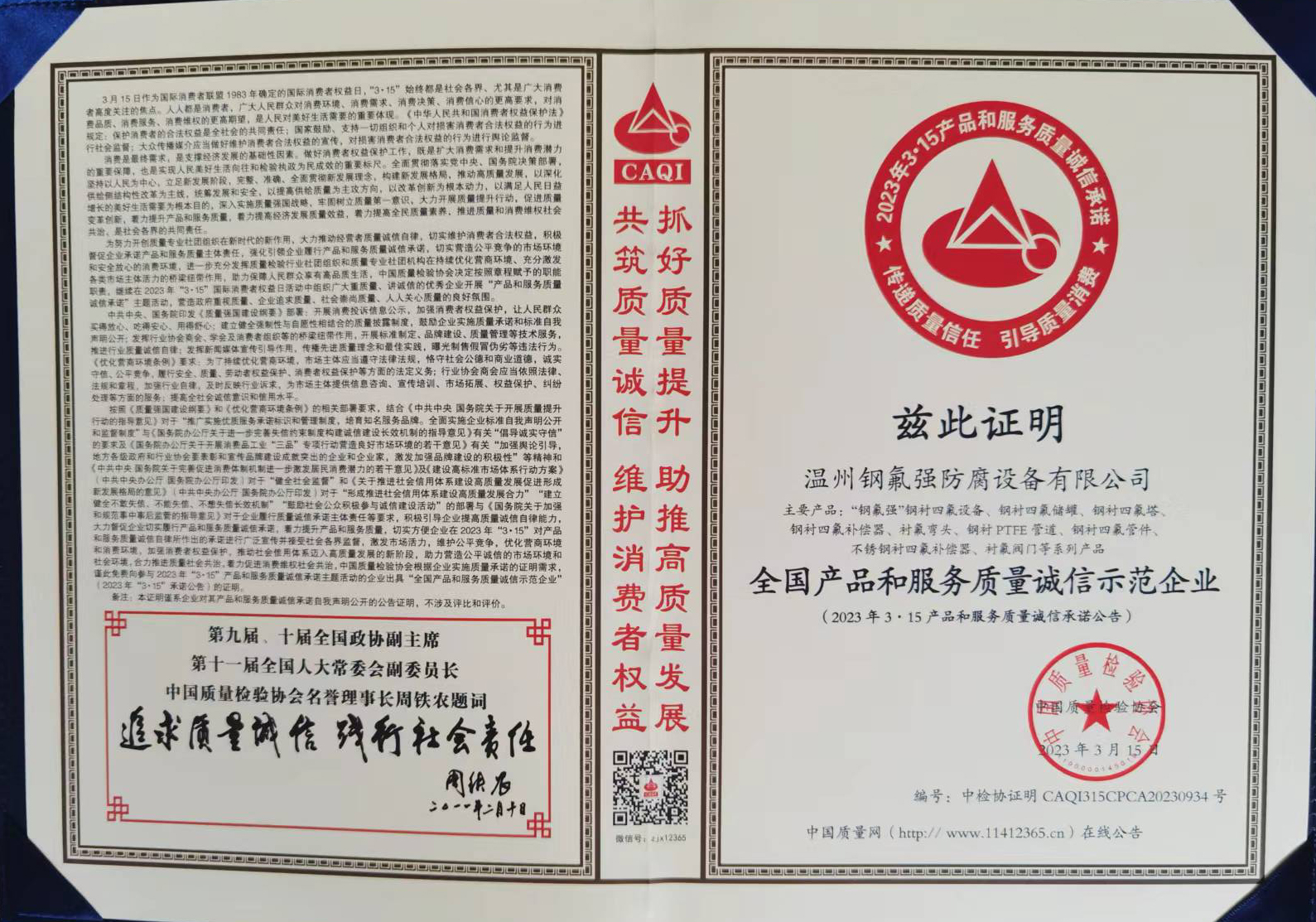 全國產品和服務質量誠信示范企業 全國質量誠信標桿企業